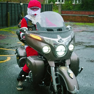 A fantastic effort from the Worcestershire Chapter of the Windows Sons - our "Brothers on Bikes" - who delivered a significant quantity of food, donated by local Freemasons, to the Kings Heath Food Bank. A rather wet and windy morning, as those hardy enough of the Widows Sons Worcestershire chapter braved storm Darragh, to escort Santa to the food bank at Kings Heath with a load of food to drop off! Congratulations to Mark Barber and his lodge for raising £1000 to purchase food donations. Photos courtesy of Adam Lewis